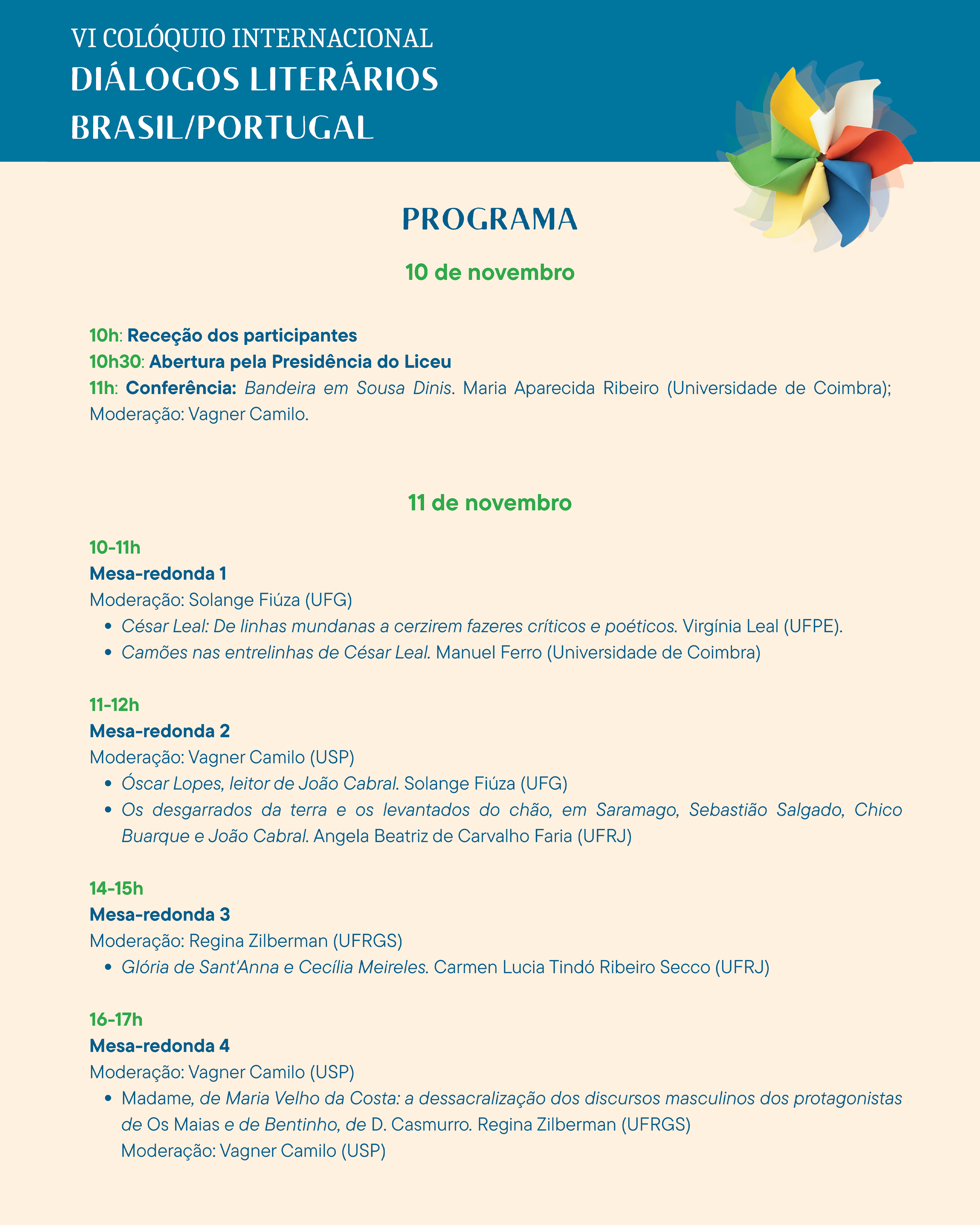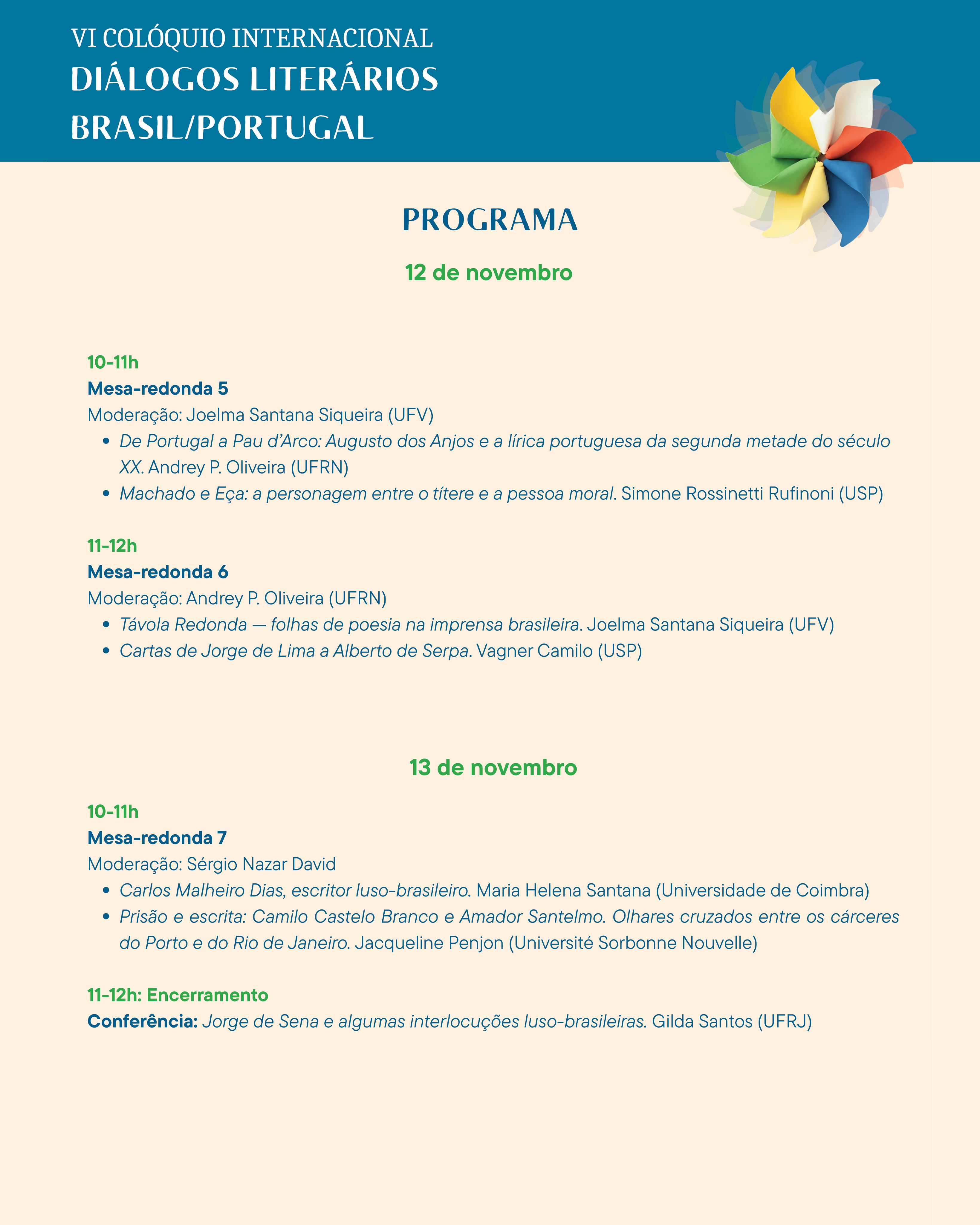O colóquio acontece nos dias 10 a 13 de novembro de 2025, no Centro Cultural do Liceu Literário Português, em Laranjeiras.